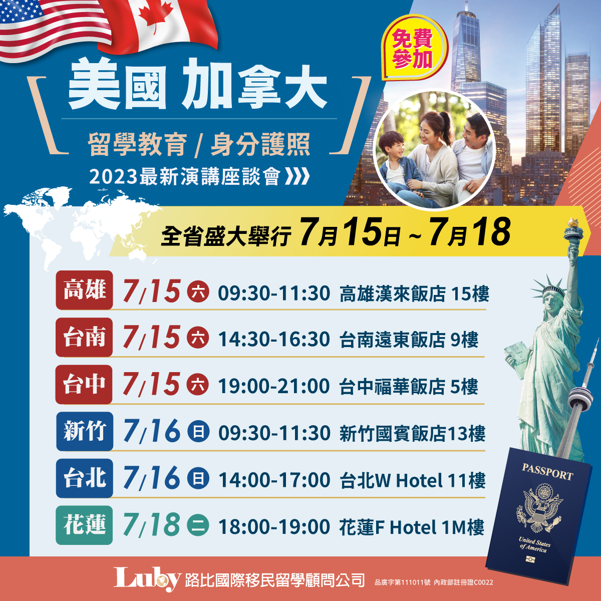 感謝Luby路比國際移民留學顧問公司贊助! 7/15~7/18 路比國際移民留學顧問公司座談會 2023-06-01 感謝Luby路比國際移民留學顧問公司贊助2023摩亞全國國小分齡羽球錦標賽獎金一起幫小選手們加油! 工商時間: 7/15~7/18 Luby路比國際移民留學顧問公司在北中南有舉辦座談會,歡迎有興趣的家長、教練可以前往參與唷! 詳細問題可與路比國際移民留學顧問公司聯繫! 回上一頁